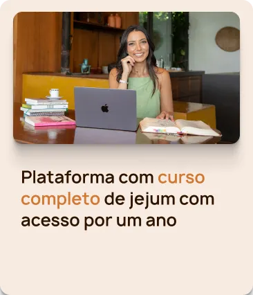 Você terá acesso a todo o conteúdo sobre jejum (por 1 ano) + uma imersão completa para eliminar até 6kg em 7 dias, de forma segura e leve.